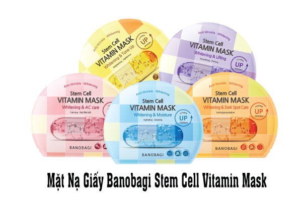 Dòng Mask giấy Banobagi đã phát các loại mặt nạ khác nhau với chức năng khác nhau: Stem cell Vitamin Mask – AC Care làm dịu da mụn; Stem cell Vitamin Mask – Moisture cấp ẩm nhanh chóng; Stem cell Vitamin Mask – Tone up nâng tôn da,….
